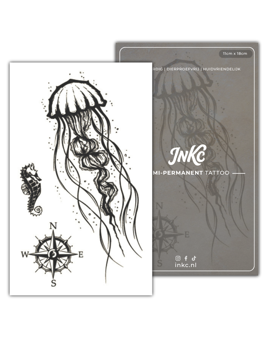 Met de nieuwste techniek van INKC™ ziet jouw tijdelijke tattoo er levensecht uit: geen glans, geen stickergevoel, maar de look en feel van een echte tattoo die natuurlijk vervaagt en tot 2 weken blijft. Direct na het zetten is hij onzichtbaar, maar dankzij onze natuurlijke inkt verschijnt het ontwerp binnen 24 uur prachtig. Perfect om een idee uit te proberen of je stijl tijdelijk te upgraden. Bestel nu en draag morgen jouw nieuwe look!