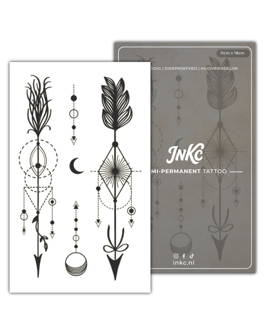 Met de nieuwste techniek van INKC™ ziet jouw tijdelijke tattoo er levensecht uit: geen glans, geen stickergevoel, maar de look en feel van een echte tattoo die natuurlijk vervaagt en tot 2 weken blijft. Direct na het zetten is hij onzichtbaar, maar dankzij onze natuurlijke inkt verschijnt het ontwerp binnen 24 uur prachtig. Perfect om een idee uit te proberen of je stijl tijdelijk te upgraden. Bestel nu en draag morgen jouw nieuwe look!