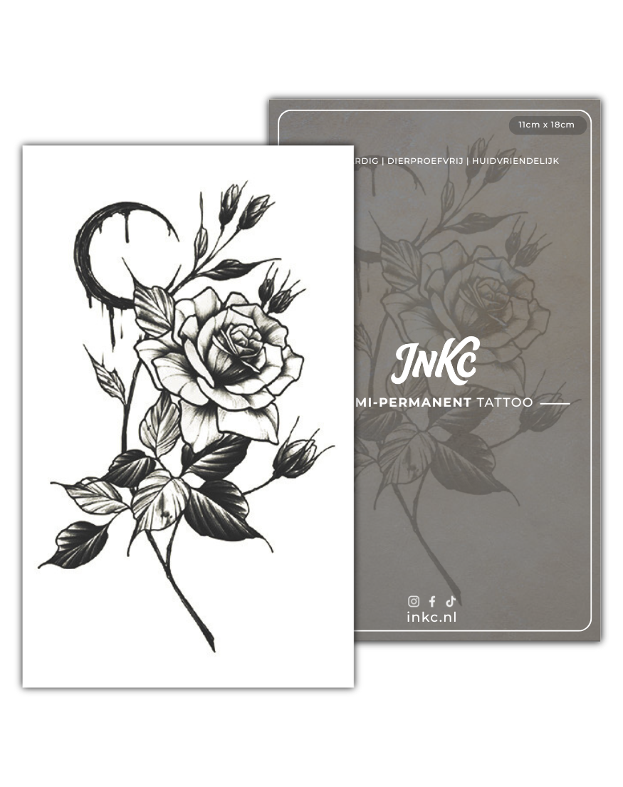 Met de nieuwste techniek van INKC™ ziet jouw tijdelijke tattoo er levensecht uit: geen glans, geen stickergevoel, maar de look en feel van een echte tattoo die natuurlijk vervaagt en tot 2 weken blijft. Direct na het zetten is hij onzichtbaar, maar dankzij onze natuurlijke inkt verschijnt het ontwerp binnen 24 uur prachtig. Perfect om een idee uit te proberen of je stijl tijdelijk te upgraden. Bestel nu en draag morgen jouw nieuwe look!