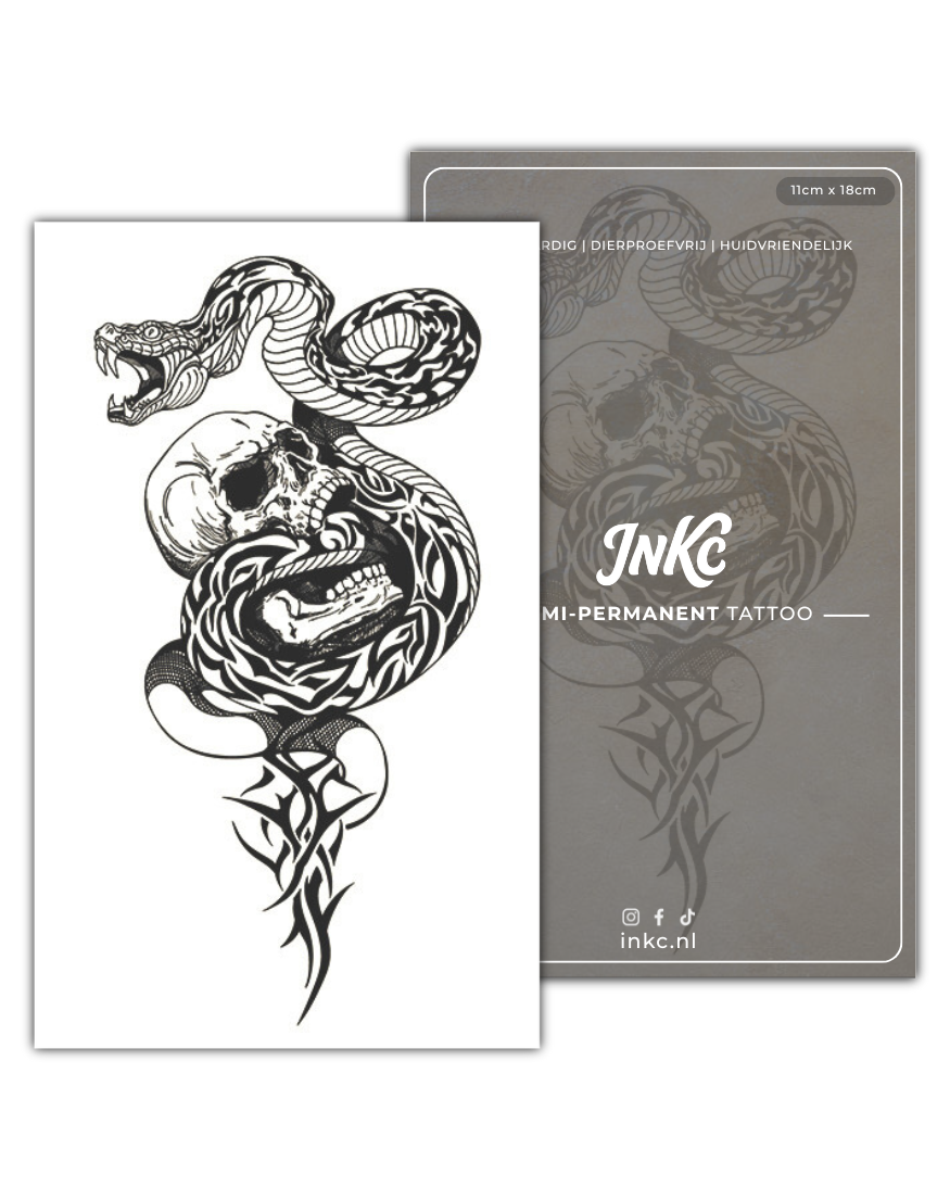 Met de nieuwste techniek van INKC™ ziet jouw tijdelijke tattoo er levensecht uit: geen glans, geen stickergevoel, maar de look en feel van een echte tattoo die natuurlijk vervaagt en tot 2 weken blijft. Direct na het zetten is hij onzichtbaar, maar dankzij onze natuurlijke inkt verschijnt het ontwerp binnen 24 uur prachtig. Perfect om een idee uit te proberen of je stijl tijdelijk te upgraden. Bestel nu en draag morgen jouw nieuwe look!