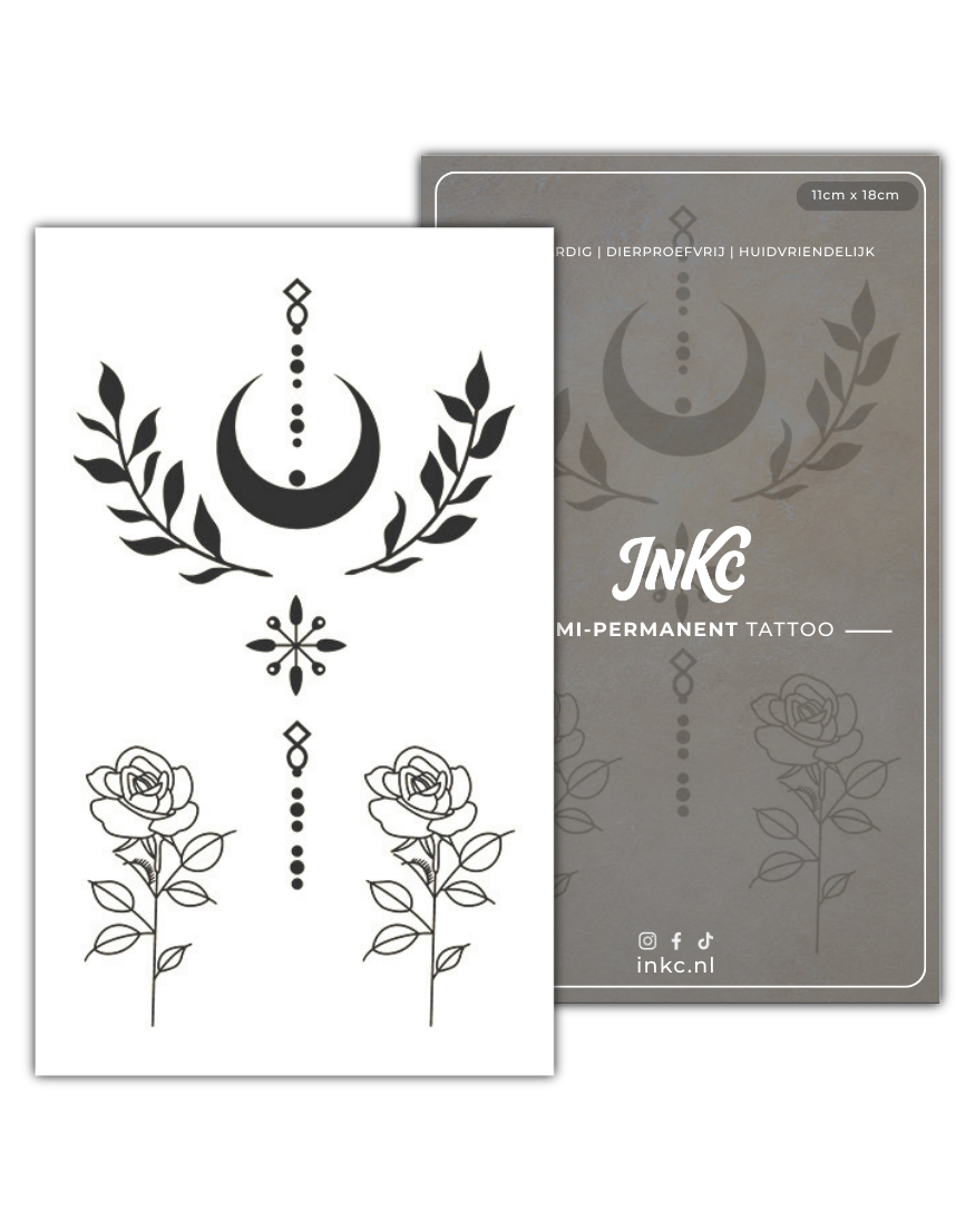Met de nieuwste techniek van INKC™ ziet jouw tijdelijke tattoo er levensecht uit: geen glans, geen stickergevoel, maar de look en feel van een echte tattoo die natuurlijk vervaagt en tot 2 weken blijft. Direct na het zetten is hij onzichtbaar, maar dankzij onze natuurlijke inkt verschijnt het ontwerp binnen 24 uur prachtig. Perfect om een idee uit te proberen of je stijl tijdelijk te upgraden. Bestel nu en draag morgen jouw nieuwe look!