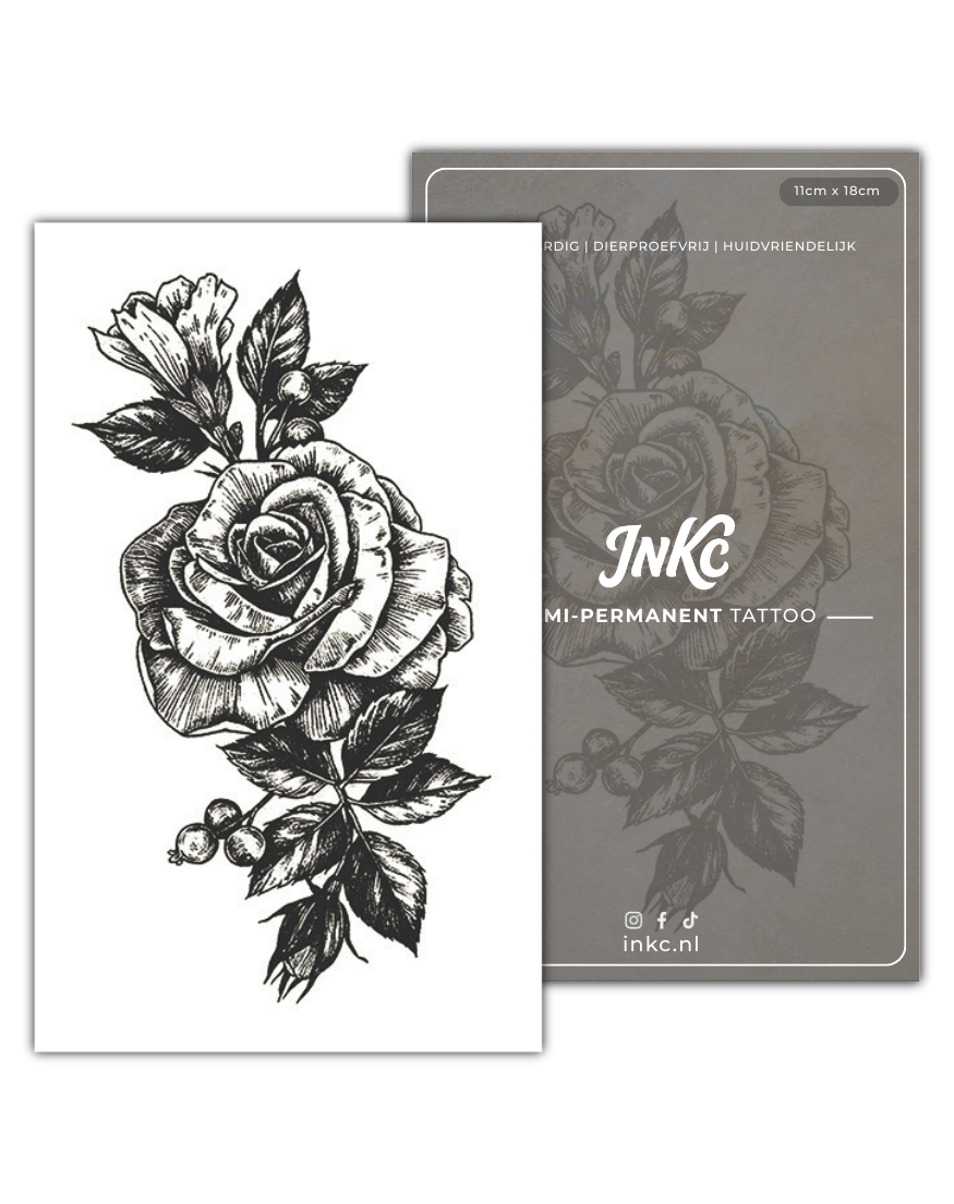 Met de nieuwste techniek van INKC™ ziet jouw tijdelijke tattoo er levensecht uit: geen glans, geen stickergevoel, maar de look en feel van een echte tattoo die natuurlijk vervaagt en tot 2 weken blijft. Direct na het zetten is hij onzichtbaar, maar dankzij onze natuurlijke inkt verschijnt het ontwerp binnen 24 uur prachtig. Perfect om een idee uit te proberen of je stijl tijdelijk te upgraden. Bestel nu en draag morgen jouw nieuwe look!