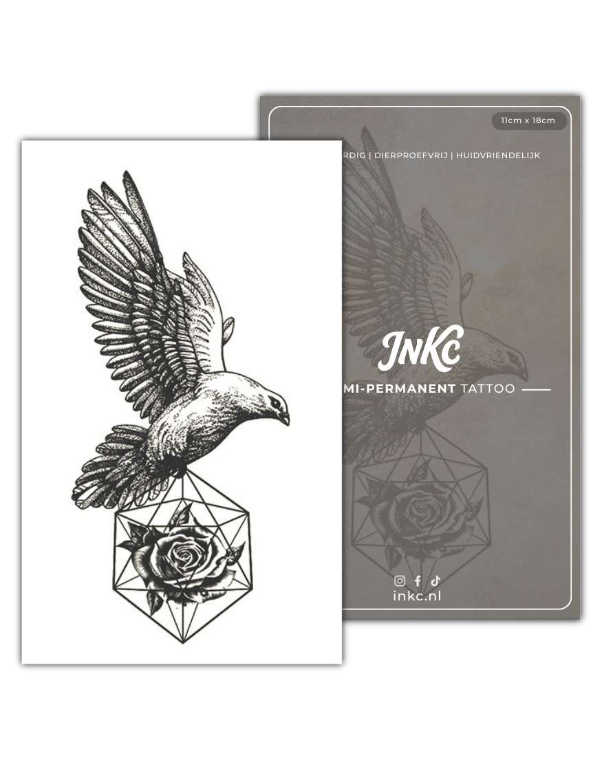 Met de nieuwste techniek van INKC™ ziet jouw tijdelijke tattoo er levensecht uit: geen glans, geen stickergevoel, maar de look en feel van een echte tattoo die natuurlijk vervaagt en tot 2 weken blijft. Direct na het zetten is hij onzichtbaar, maar dankzij onze natuurlijke inkt verschijnt het ontwerp binnen 24 uur prachtig. Perfect om een idee uit te proberen of je stijl tijdelijk te upgraden. Bestel nu en draag morgen jouw nieuwe look!