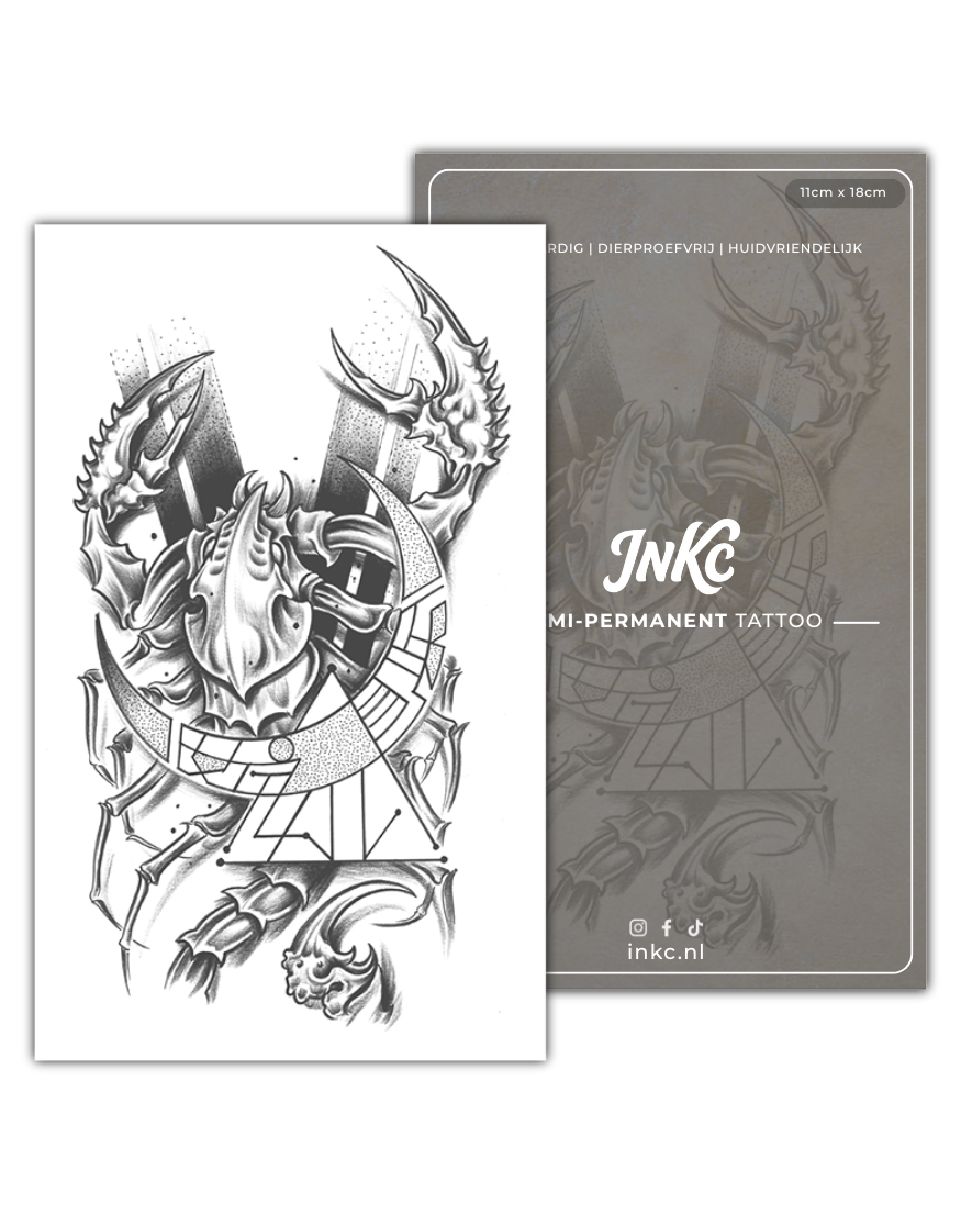 Met de nieuwste techniek van INKC™ ziet jouw tijdelijke tattoo er levensecht uit: geen glans, geen stickergevoel, maar de look en feel van een echte tattoo die natuurlijk vervaagt en tot 2 weken blijft. Direct na het zetten is hij onzichtbaar, maar dankzij onze natuurlijke inkt verschijnt het ontwerp binnen 24 uur prachtig. Perfect om een idee uit te proberen of je stijl tijdelijk te upgraden. Bestel nu en draag morgen jouw nieuwe look!