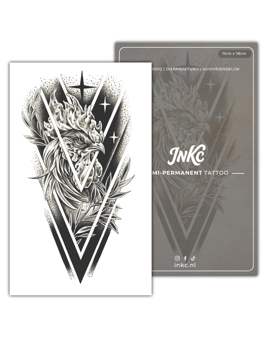 Met de nieuwste techniek van INKC™ ziet jouw tijdelijke tattoo er levensecht uit: geen glans, geen stickergevoel, maar de look en feel van een echte tattoo die natuurlijk vervaagt en tot 2 weken blijft. Direct na het zetten is hij onzichtbaar, maar dankzij onze natuurlijke inkt verschijnt het ontwerp binnen 24 uur prachtig. Perfect om een idee uit te proberen of je stijl tijdelijk te upgraden. Bestel nu en draag morgen jouw nieuwe look!