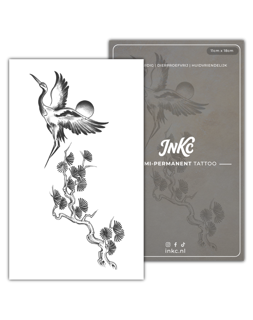 Met de nieuwste techniek van INKC™ ziet jouw tijdelijke tattoo er levensecht uit: geen glans, geen stickergevoel, maar de look en feel van een echte tattoo die natuurlijk vervaagt en tot 2 weken blijft. Direct na het zetten is hij onzichtbaar, maar dankzij onze natuurlijke inkt verschijnt het ontwerp binnen 24 uur prachtig. Perfect om een idee uit te proberen of je stijl tijdelijk te upgraden. Bestel nu en draag morgen jouw nieuwe look!